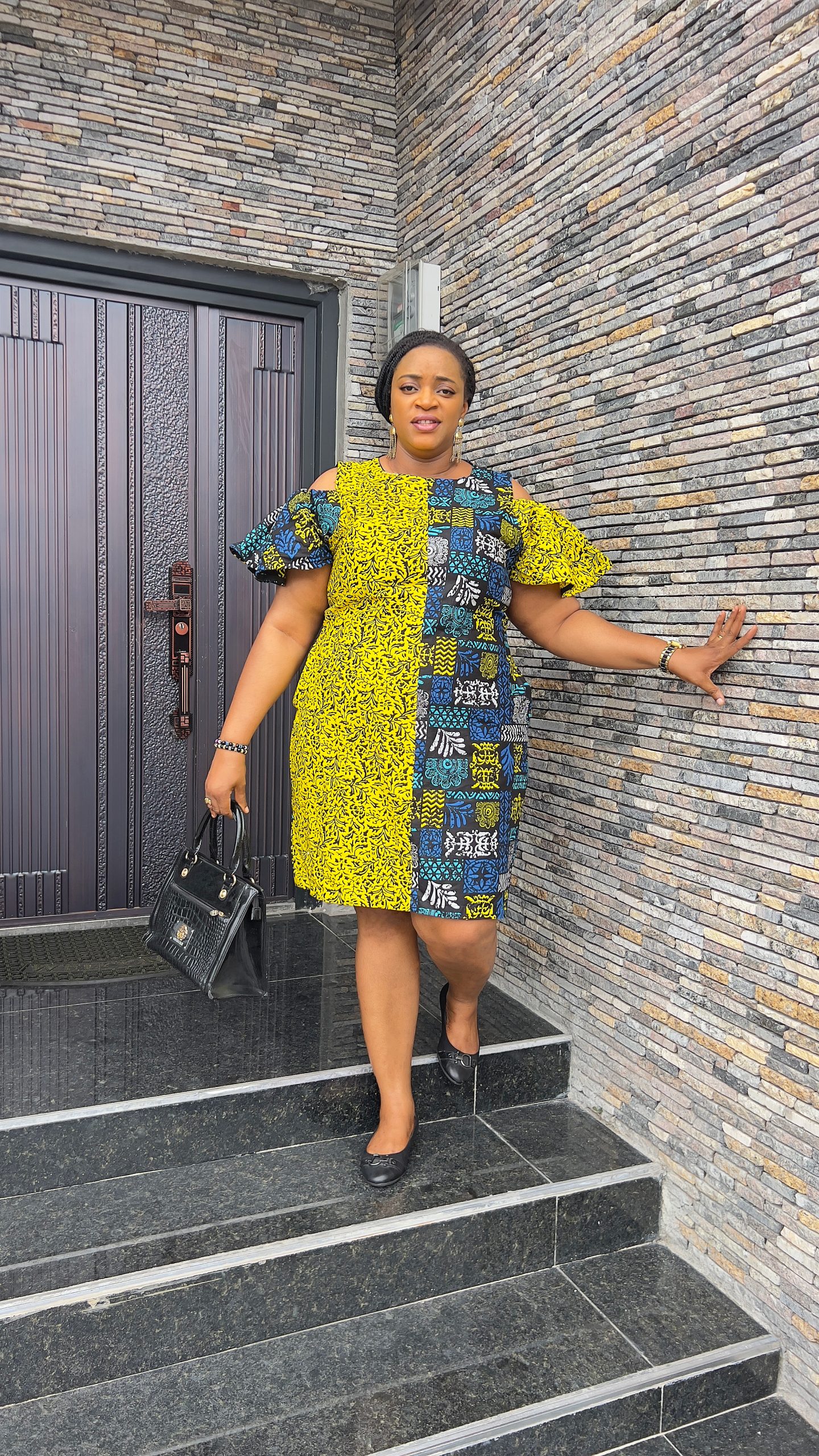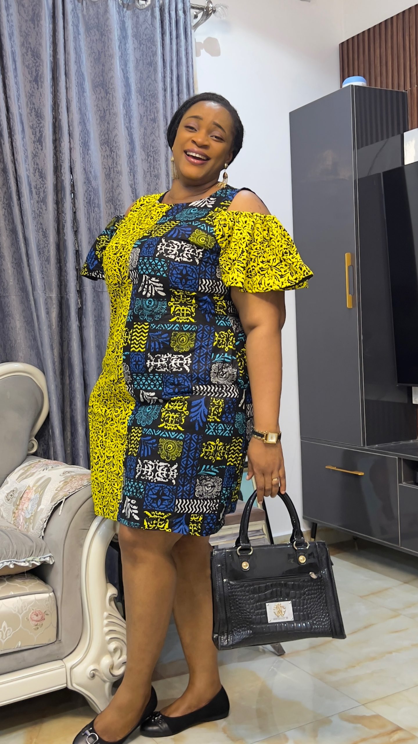 Yellow and blue quality ankara fabric. cold shoulder flutter sleeve that makes it chic and polished look.